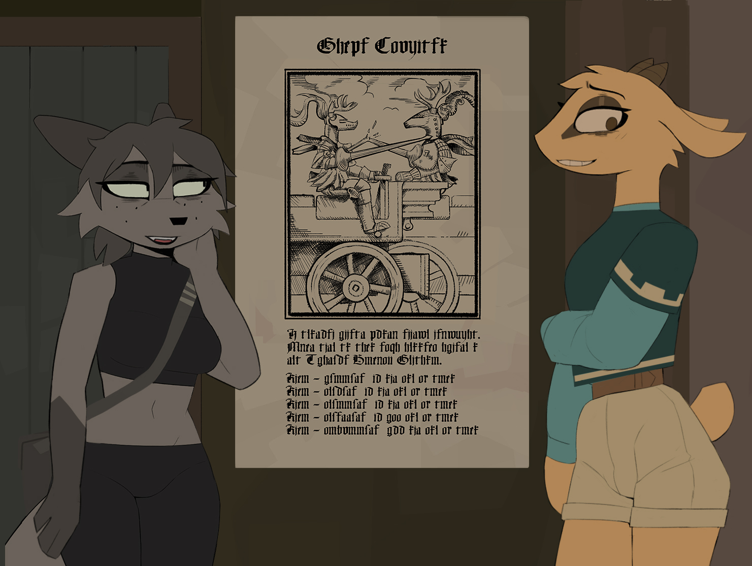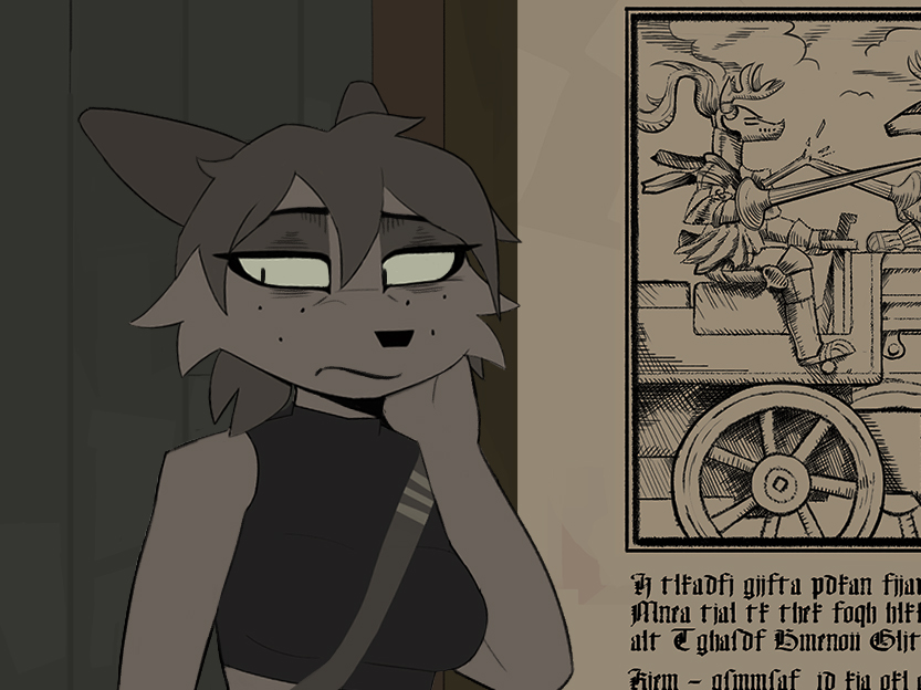 “Oh d-don’t mind that haha. It’s from the press– It’s about the circus here in Cohv… Sorry– I usually have time to put away my weird stuff before someone visits.”