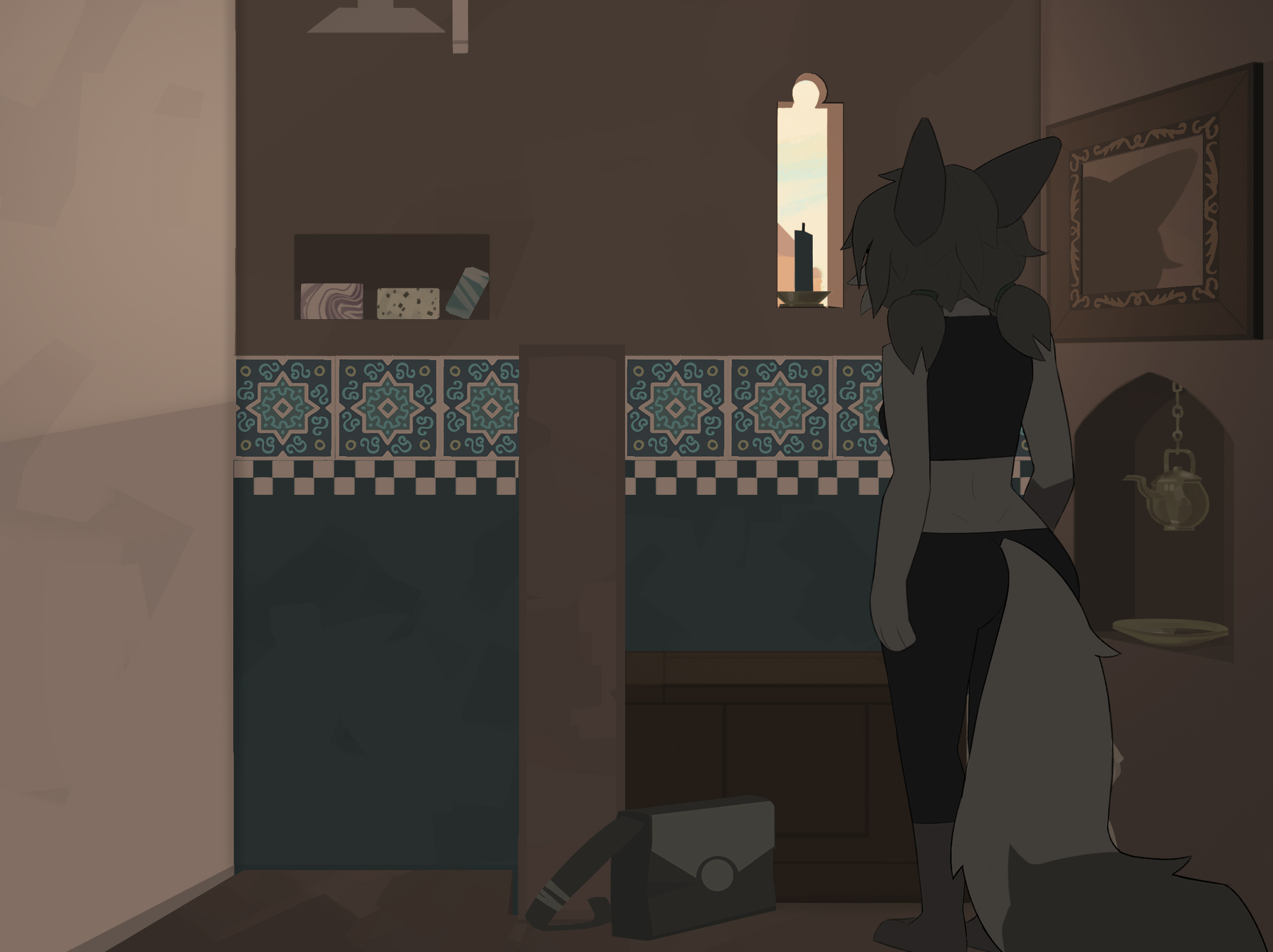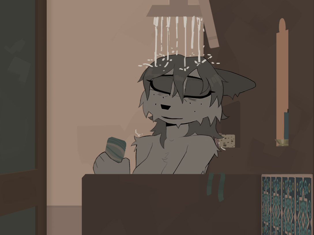 The water is cold, but it feels quite nice on your fur. Almost like standing out in the rain but… naked and free. Clumps of dirt and matted fur wash off of you, making you feel a bit lighter.